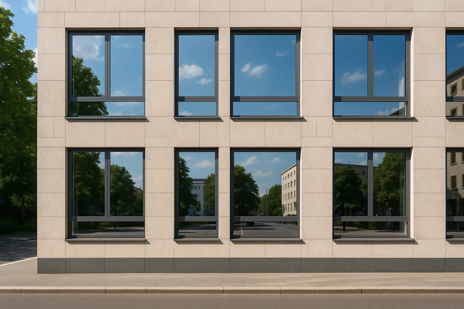 Spiegelfolie ist nicht nur ein technisches Produkt, sondern ein Gestaltungselement (Quelle: Umweltdialog). Sie passt sich jedem Fenstertyp an und überzeugt durch ihre dezente Optik. Die Außenmontage sorgt für maximale Wirkung gegen Hitze und schützt das Glas vor starker Sonneneinstrahlung. Gleichzeitig bleibt Ihre Fassade modern und gepflegt. Das ist besonders wichtig für Unternehmen, Praxen und öffentliche Gebäude, da der erste Eindruck zählt. Privathaushalte profitieren ebenso, denn die Folie fügt sich harmonisch in jede Architektur ein.