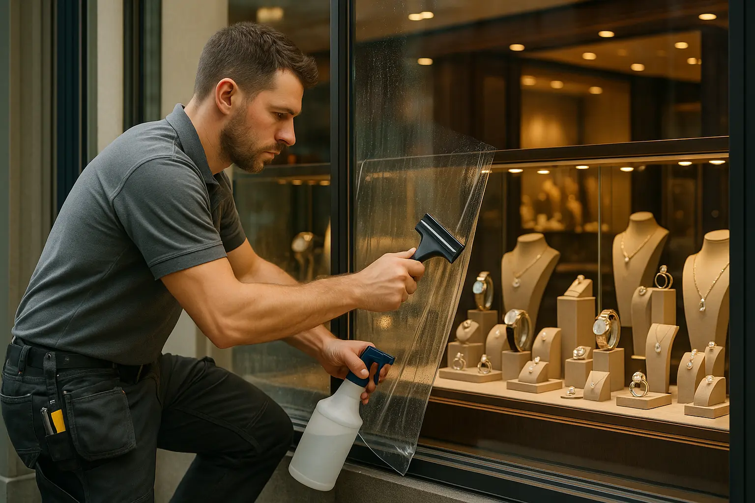 - Sie möchten zugleich Einbruchschutz und UV-Filter? → Sicherheitsfolie in verstärkter Ausführung (200–300 µm), zugeschnitten für Fenster und Glasfassaden im Büro oder Schaufensterbereich.